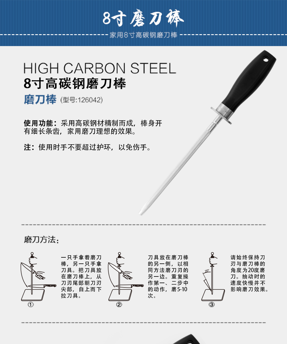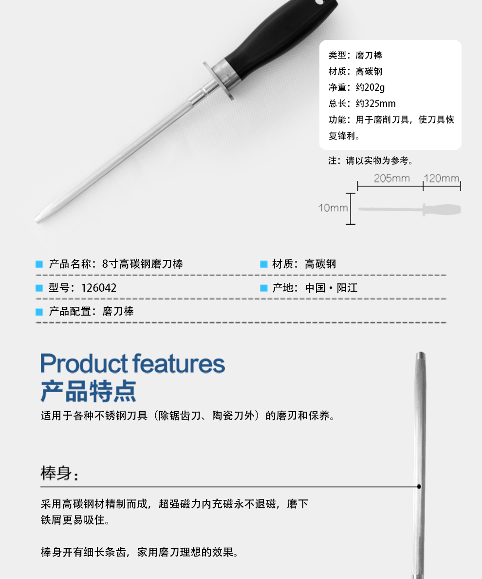 8寸高碳钢磨刀棒